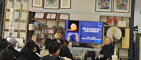 本网讯:4月19日下午15:30, 电子科技大学蓝马国际艺术研究中心主任吴应鸿先生应邀来我院做题为“城市公共空间区域文化艺术创意思考”的学术讲座。讲座在美术楼藏纸研究中心举行。美术学院院长黄洋、副院长焦凤、以及部分师生到场聆听。