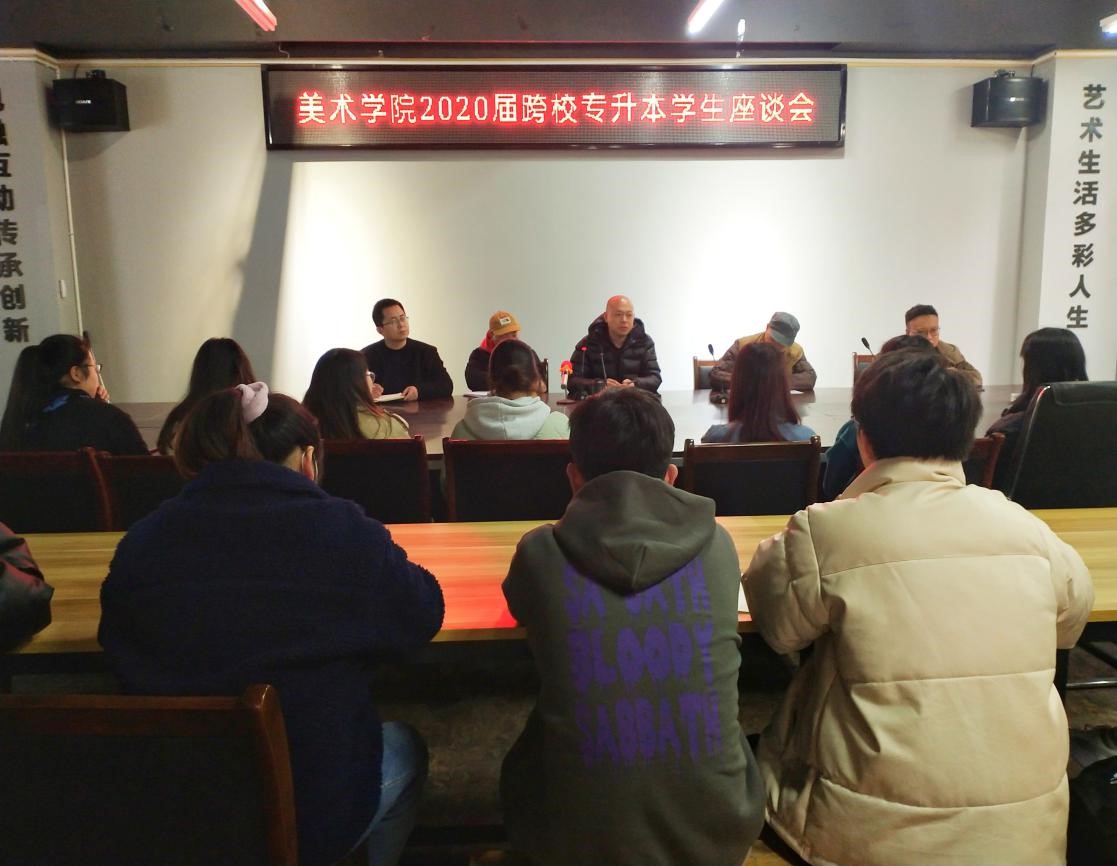 本网讯:2021年3月11日14∶30,为了解专升本学生在校期间的思想、学习、生活状况,有针对性地对学生开展教育引导,激励学生树立更高的学习目标,取得更好的成绩,美术学院2020届跨校专升本学生座谈会于美术楼会议室顺利召开,学院院长杨瑞洪教授、副书记黄洋教授、刘少勇老师、王杨林老师及30名学生代表参加了此次会议。