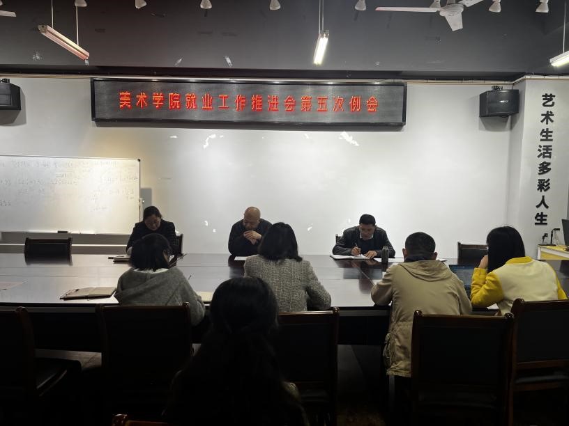 本网讯:2024年4月3日,为确保我院毕业生就业指导工作顺利进行,美术学院2024届毕业生就业工作例会第五次会议在学院会议室召开。会议由学院党委副书记马小勇主持,黄洋院长、焦凤副院长出席会议并讲话,学管办副主任、就业干事及全体2024届毕业班学业导师参加会议。