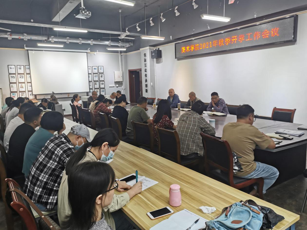 本网讯:2021年8月27日下午15点在美术学院会议室召开2021年秋季开学工作会议。会上,黄洋副书记传达学校中层干部会议精神,另就党史学习教育、就业、开学疫情防控等工作进行安排。马小勇副院长传达了《阿坝师范学院关于进一步改革完善本专科课程过程性考核的指导性意见》,并对开学教研室工作、教师备课、教学准备等工作进行安排。杨瑞洪院长就学院本学期评估工作、师资队伍建设、开学展览等工作做了安排。