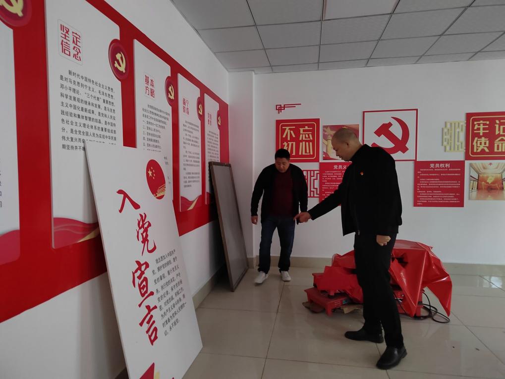 与三江镇街村党支部张书记研究党员活动室建设工作