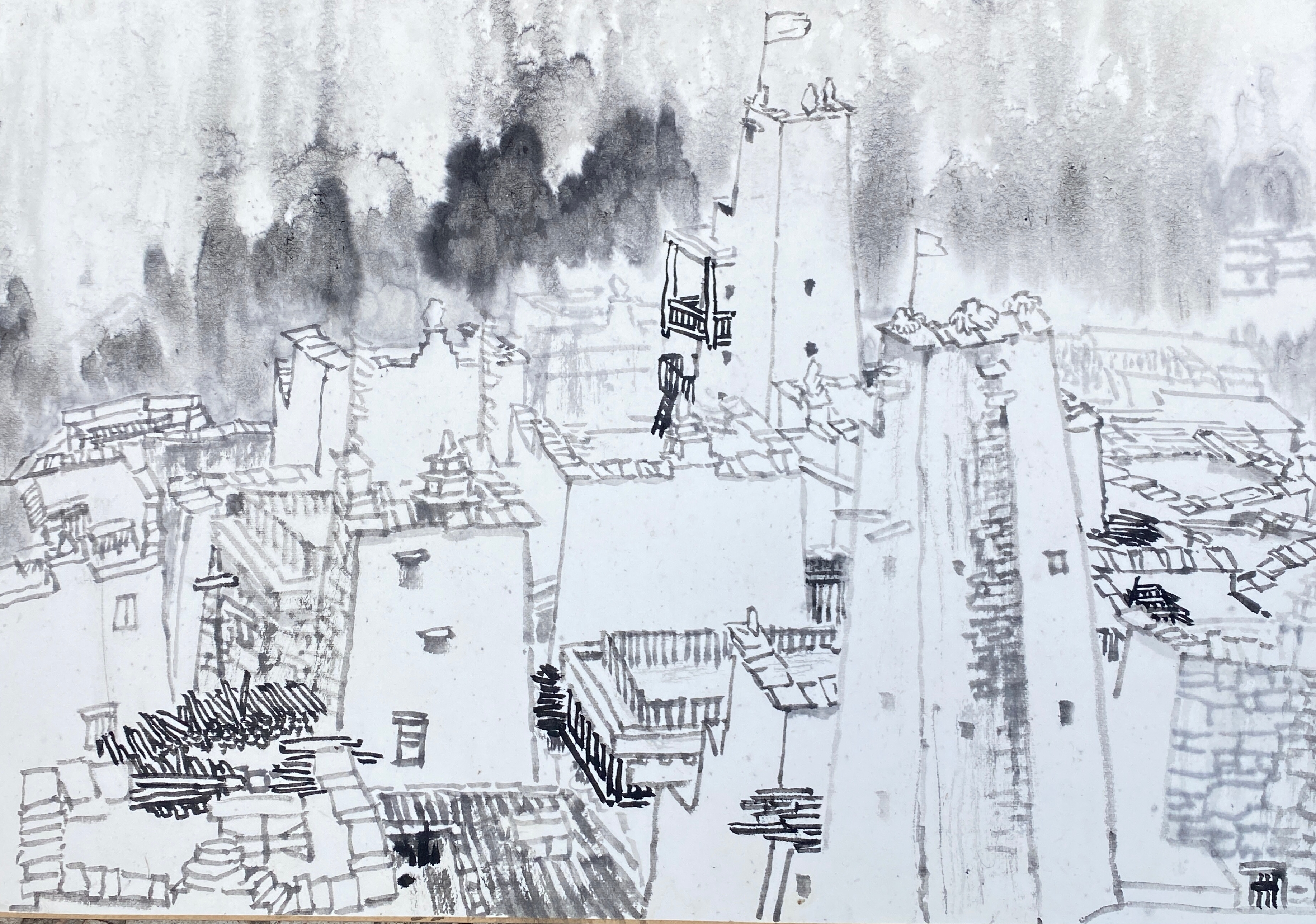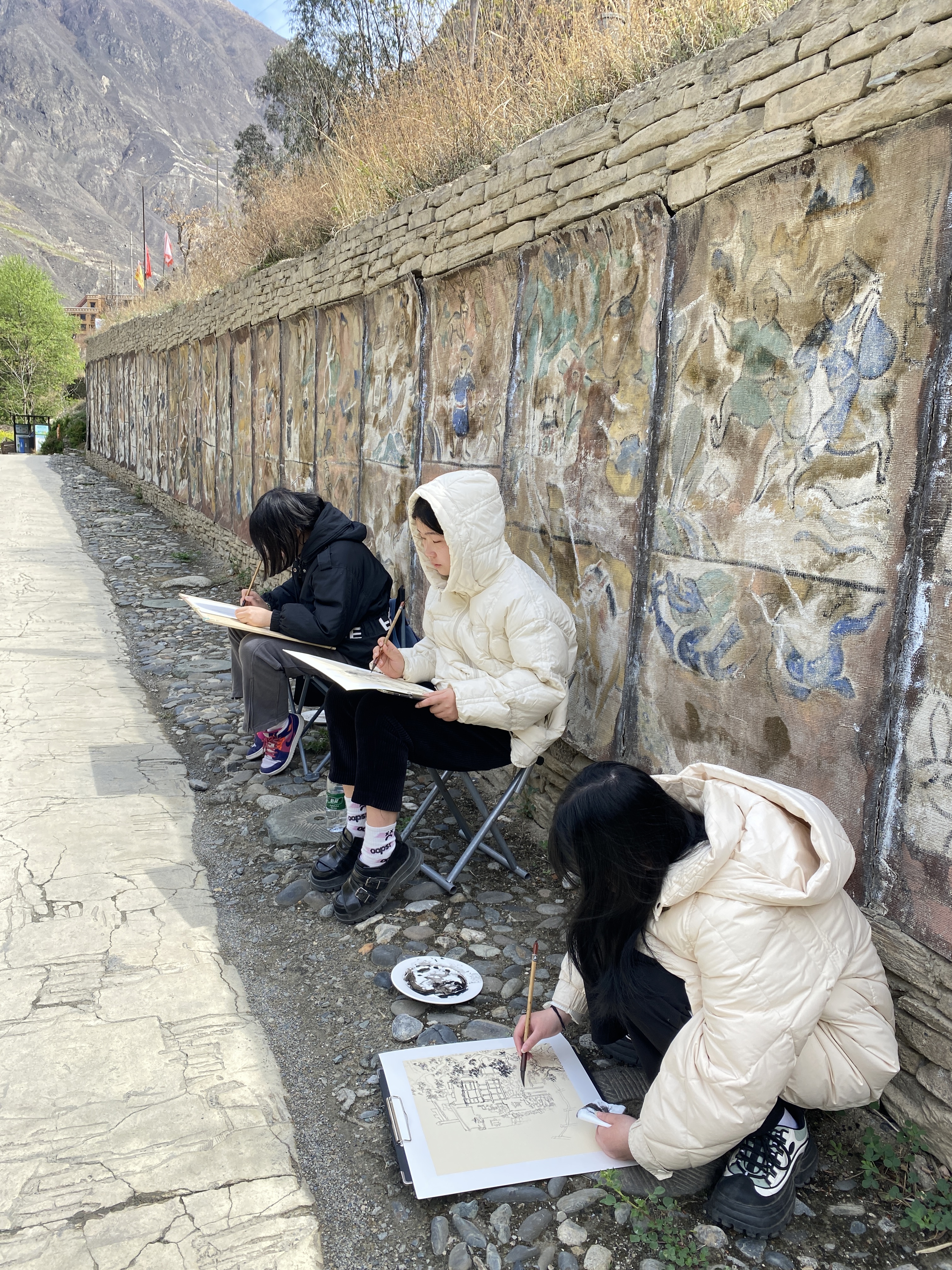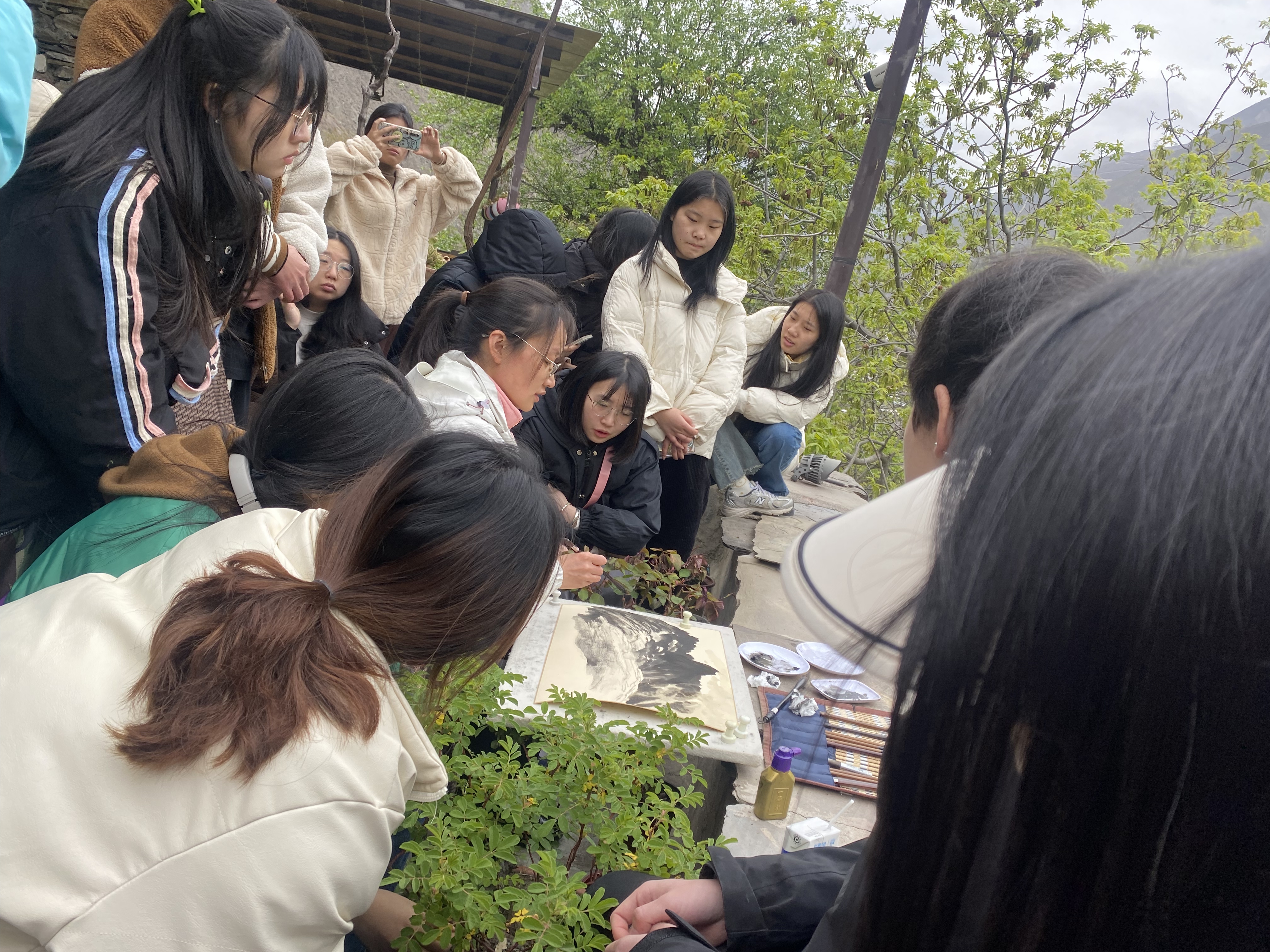 本网讯:根据《写意山水》课程教学大纲要求,为提升学生国画山水表现能力,2023年4月7日,2020级美术学2班在理县桃坪羌寨和汶川羌人谷开启了为期4天的写意山水写生。本次写生由苏亮老师带队,学生深入羌寨民居,将理论知识和临摹技能运用到写生创作中,切实提高了学生的造型能力、构图能力、绘画语言表现力,使学生掌握写意山水对景写生技法。