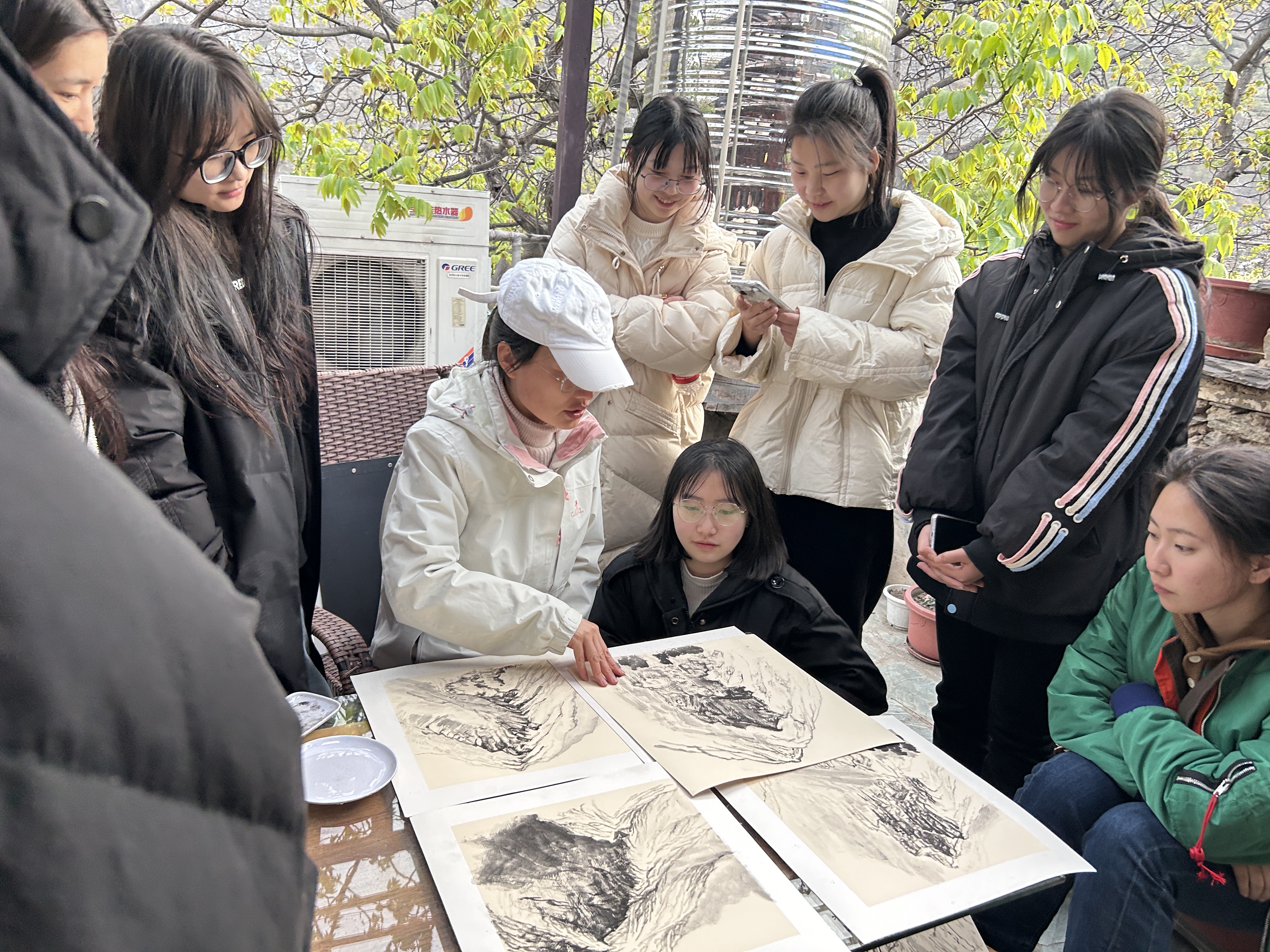 4⽉7⽇早上8点,在苏亮老师的带领下,2020级美术学2班的同学从学校出发,正式开启此次写生之行。本次写生课程的教学内容,以水墨写生为主。苏老师通过示范教学,开展学生写生实践,课中老师对学生写生过程进行指导与作业点评,每天晚上苏老师会集中讲评,授课生动灵活、效果良好,达到了预期教学目标。