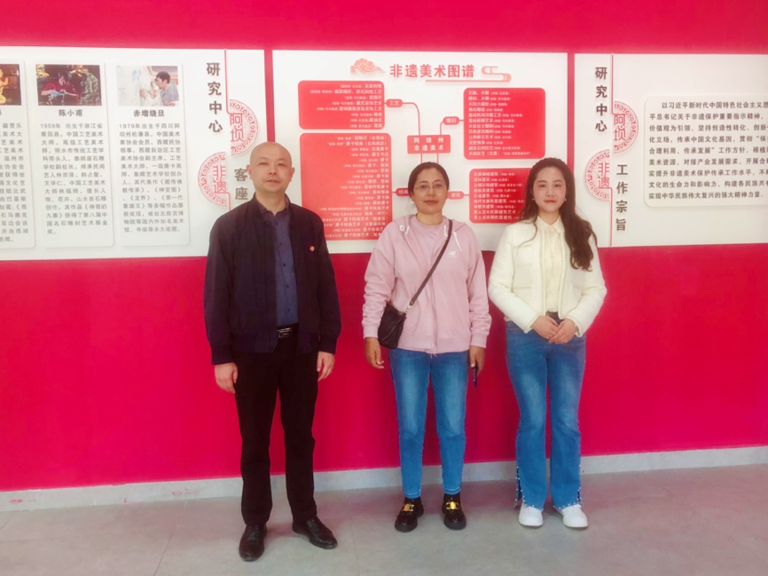 本网讯:2023年4月15日,阿坝州文化体育和旅游局党组成员机关党委书记琼措到美术学院对阿坝州非遗美术研究中心(教育基地)进行调研。